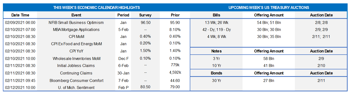 With only a pair of Federal Reserve speaking engagements and less than a half-dozen generally second-tier economic indicators on this week’s calendar, the attentions of market participants likely will be drawn to the Biden Administration’s ongoing efforts to get the American Rescue Plan through Congress and the impeachment trial of former President Trump.