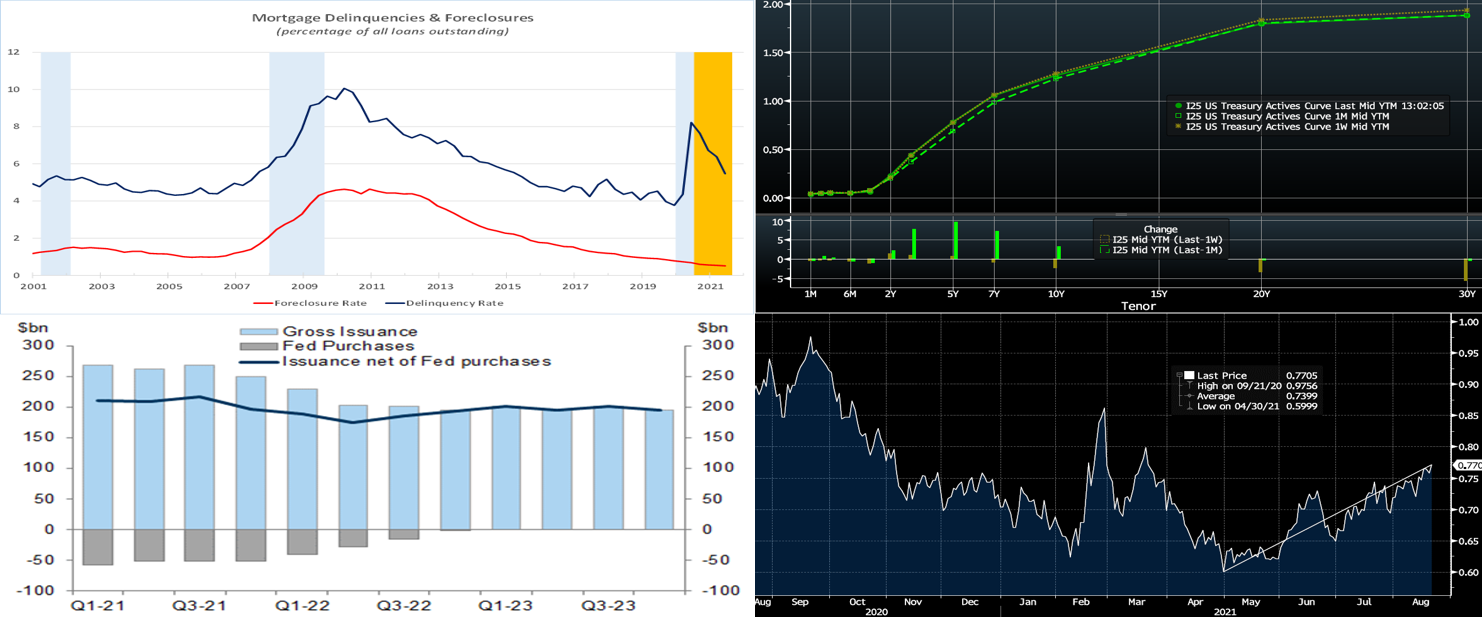 On the UST supply front, this week brings 2/5/7-year auctions. The market will monitor economic data and especially the Jackson Hole symposium for any Fed officials’ pronouncements regarding the taper of bond purchases.