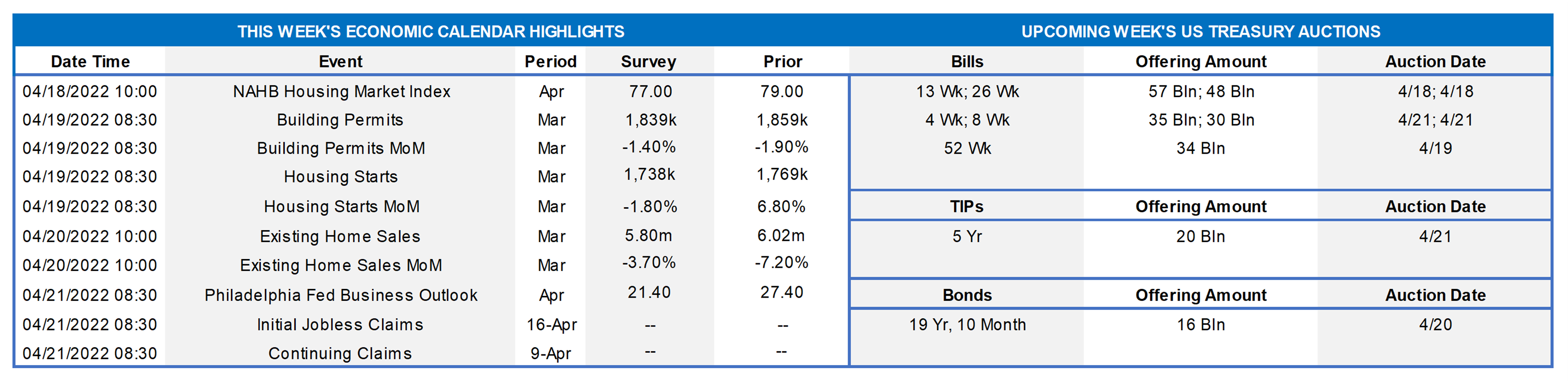 - Apr. 20 Federal Reserve to release Beige Book Summary of Commentary on Current Economic Conditions.