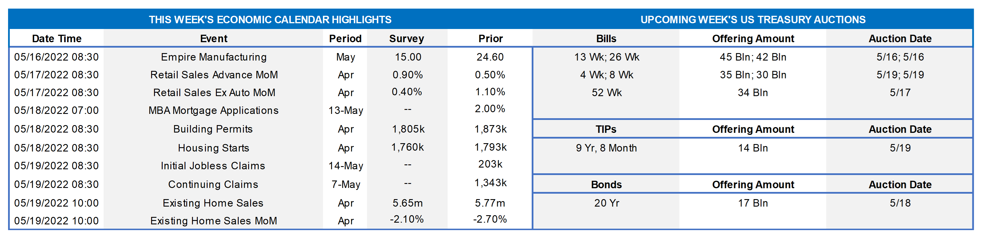 - May 16 New York Fed President Williams to take part in a discussion hosted by the Mortgage Bankers Association in New York.