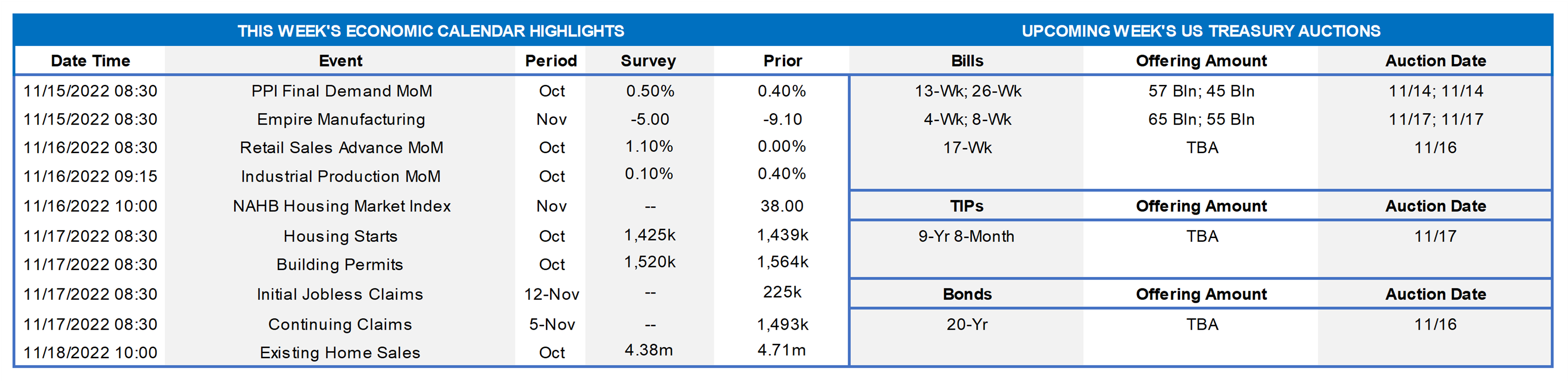 - Nov. 14 New York Fed President Williams to participate in a panel discussion at the Economic Club of New York.