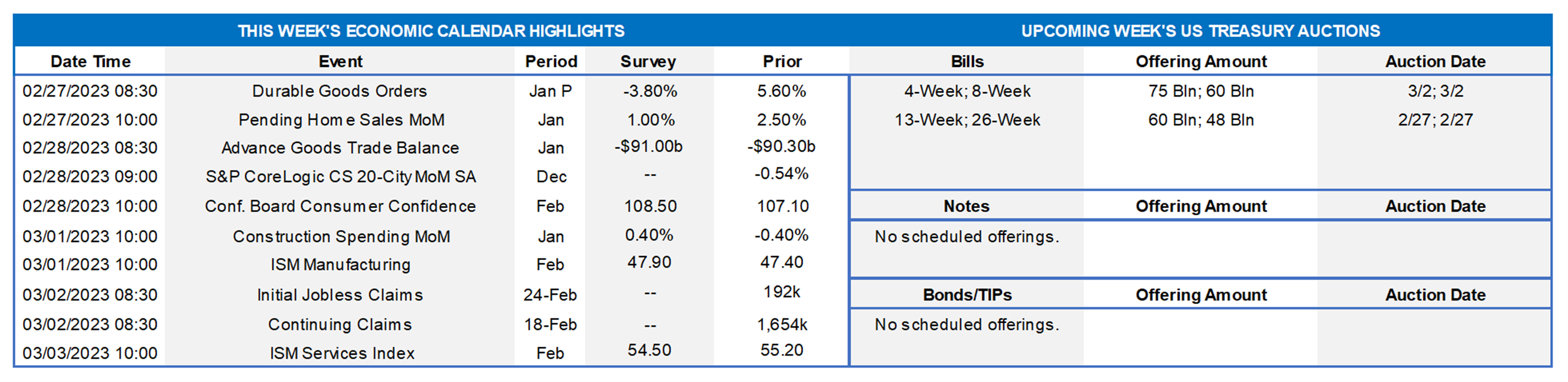 Jobless Claims: New claims for unemployment insurance benefits probably remained below the 200K mark for a seventh straight week during the period ended February 24. Keep an eye on continuing claims, which have clocked in below the 1.7mn mark since mid-December, for any signs that recently furloughed employees may be having a more challenging time finding work.