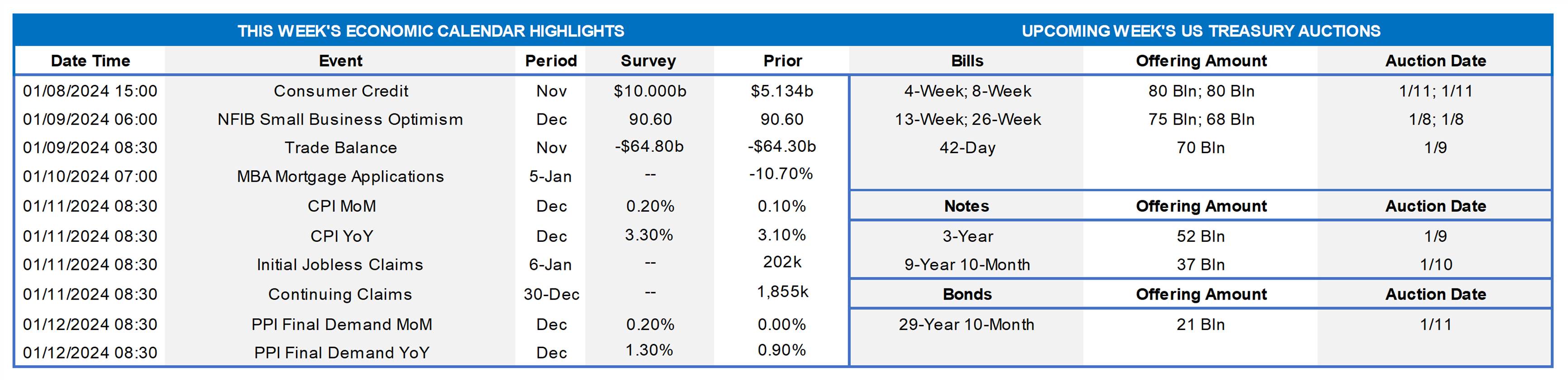 - Jan. 10 New York Fed President Williams to give a speech on the 2024 economic outlook at an event in White Plains, NY.
