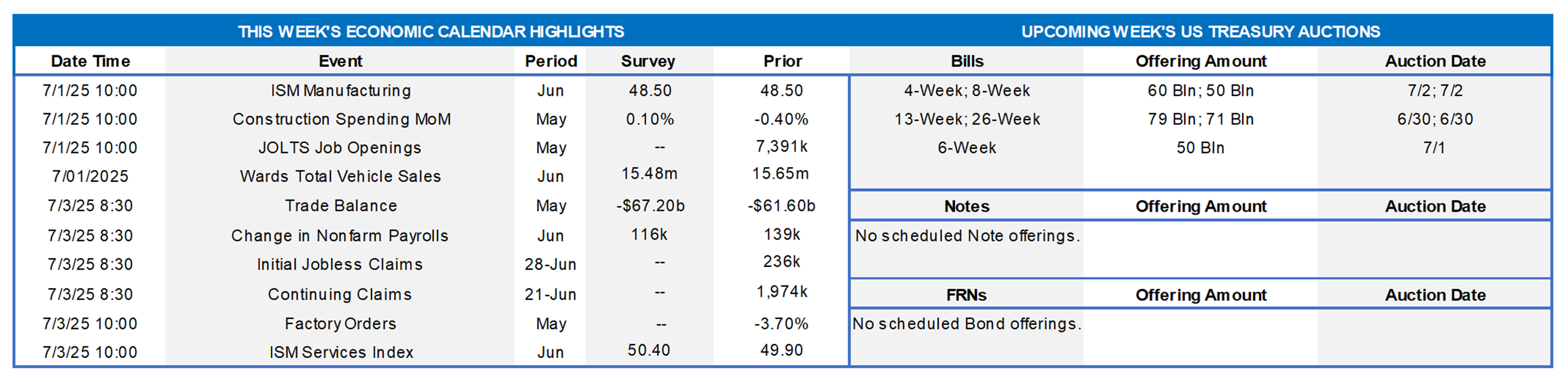 We thank Chief Economist Brian Jones for his invaluable contributions to the Weekly Update and wish him well in retirement! The MSD Update will return on Friday, July 11, 2025. Happy Independence Day!